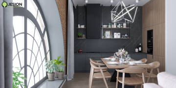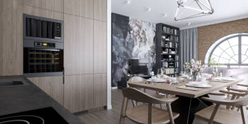 « WróćRealizacja nr 1Meble kuchenne na wymiar - zabudowa w kształcie litery "L" w loftowym mieszkaniu.
